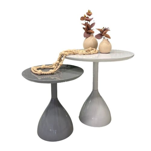 Estrutura em ferro com acabamento em pintura automotiva PU alto brilho, tampo em MDF Laca alto brilho