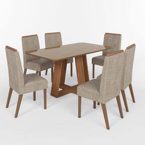 - Sapatas deslizantes. Medida da Mesa (A x L x P): 80 x 160 x 90 cm Peso da Mesa: 58 kg Mesa suporta até: 40 kg Acabamento da Cadeira/Banco: Pintura Acabamento da Mesa: Pintura UV Ambiente Principal: Sala de Jantar Cadeira/Banco Estofada: Encosto e Assento Estofados Cadeira/Banco estofada: Encosto e Assento Estofados Cadeira/Banco Suporta Até: 120.0000 Cadeira/Banco suporta até: 120 kg codigo_ean: 7900288295170 Complexidade da Montagem: Alta: deve ser montado por um montador especializado Cor: Marrom/Bege Cor do Produto: Marrom/Bege Cor Secundária: Bege De Canto (Canto Alemão): Não Enchimento do Assento: Espuma D-23 Escala de Brilho: Fosco Espessura do Tampo: 25 mm Estrutura do Assento: MDF/MDP Formato do Tampo: Retangular Itens Inclusos: 1 Mesa, 6 Cadeiras, Kit Ferragens e Manual de Montagem Linha ou Coleção: Lins/Nina Manual de Montagem e Instalação: https://product-hub-prd.madeiramadeira.com.br/723047147/documents/d424cea4-c722-457c-9ea4-e85f2e3ca4ea3328938326617634904821536.pdf Marca: Henn Material da Base da Mesa: MDP Material da Estrutura da Cadeira: MDF/MDP Material do Tampo: Vidro/MDF Material Principal: MDF/MDP Medida da Cadeira/Banco (A x L x P): 99,5 x 44 x 59cm Medida do Tampo (L x C x E): 160 x 90 x 2,5cm Mesa Extensível: Sim Necessita Montagem: Sim Origem do Produto: Nacional Peso da Cadeira/Banco: 8 kg Possui Apoio Para os Pés: Não Quantidade de Cadeiras: 6 Quantidade de Lugares: 06 Recomendações de Uso, Manutenção e Limpeza: Para limpeza de seu móvel, use uma flanela seca ou umedecida. Não utilize produtos químicos que possam danificar o produto. Revestimento da Cadeira/Banco: Linho Sistema de Montagem: Parafusos e Cavilhas