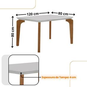 Conjunto Sala de Jantar Mesa Liz 120cm em MDF Canto Reto e 4 Cadeiras Athenas Moderna