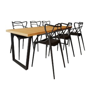 Características Tipo: Conjunto mesa e cadeiras Modelo: Lana e Alegra Cor tampo: Madeira maciça Cor base: Preto Cor Cadeiras: Preto