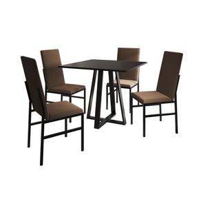 Tipo: Conjunto Modelo: Mônaco Tecido Cadeira: Veludo Cor Estofado: Marrom Cor Base Cadeira: Preto Cor Tampo Mesa: Preto Cor Base Mesa: Preto