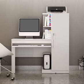 Otimize seu espaço de trabalho com nossa mesa para computador e multiuso integrado. Com um design moderno e versátil, esta combinação oferece não apenas um local confortável para seu computador, mas também espaço adicional para armazenamento e organização. Transforme seu ambiente de trabalho em um espaço eficiente e funcional, onde cada detalhe é pensado para aumentar sua produtividade e conforto. Altura do Conjunto: 182 cm Ambiente: Escritório Ambiente Principal: Escritório Cor: Branca Fosco Informação Complementar: 1x Mesa para Computador Escrivaninha com Armário Branca Fosco Largura: 130 cm Altura: 136 cm Peso: 41,6 kg Profundidade: 44 cm Necessita Montagem: Sim