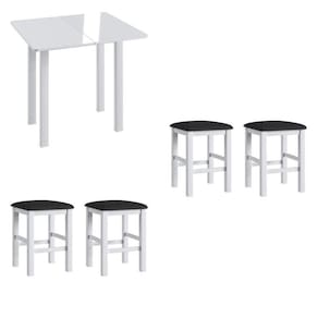 Conjunto Mesa Dobrável com 04 Banqueta Estofada Madeira, CJE10400 da Móveis Canção. Conjunto confeccionado em MDF e banquetas de madeira de alta qualidade proporcionando conforte e beleza para seu lar. Este conjunto pode ser facilmente transportado pelo seus cômodos tornando-o versátil e multiuso. Possui Portas: Não Altura do Conjunto: 77 cm Ambiente: null Ambiente Principal: Sala de Jantar Cor: Branco Informação Complementar: 1x Mesa para Sala de Jantar Dobrável 800 Mdf Branco Largura: 90 cm Altura: 77 cm Peso: 14 kg Profundidade: 80 cm Necessita Montagem: Sim