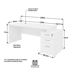 Dimensões da Mesa Pedestal 3 Gavetas: