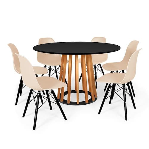 Mesa de Jantar Redonda Amadeirada Talia 120cm com 4 Cadeiras Eames Eiffel Base Preta