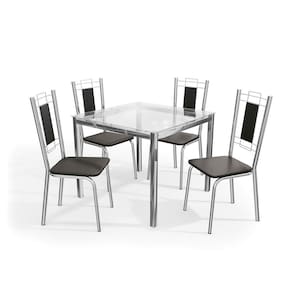Os produtos da linha crome da Kappesberg possuem estrutura de metal e acabamento polido. As estruturas cromadas são feitas através de um processo 100% autorizado, enquanto que as estruturas pintadas, utilizam tinta epóxi em sua composição, tornando o produto mais resistente e durável. O conjunto mesa Reno com 4 cadeiras Kappesberg possui estrutura robusta, metálica e cromada, é estilosa e elegante. O vidro com espessura de 6mm transparente dá um charme a mais ao produto, aliada com as cadeiras, que possuem assentos e encostos estofados recobertos em corino. Formam um conjunto que combina facilmente com a cozinha ou área gourmet.