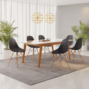 As mesas são indispensáveis para o bom funcionamento de uma casa e por isso a Mesa Elegance é ideal para cozinhas ou salas de jantar. Possui amplo espaço para que você possa dispor pratos, copos, talheres e objetos diversos. Com pés em madeira maciça o móvel é de fácil combinação sendo perfeito para a sua rotina ou reuniões de convidados. Conheça nossa linha de Cadeira Eames e se apaixone por esse modelo que vai mudar o ambiente da sua casa, deixando ainda mais moderno, bonito e sofisticado. A Cadeira é um item que faz toda a diferença em um ambiente e Charles Eames fez história na indústria mundial de móveis com modelos exclusivos de cadeiras nos anos 50 que continuam inspirando designs até hoje. Nossa Cadeira Eames com Base de Madeira Marroml Dsw foi inspirada nesses modelos de Charles Eames. São cadeiras, com curvas detalhadamente desenvolvidas para o seu conforto. Com altíssima qualidade, nossas Cadeiras Eames foram desenvolvidas com formato ergonômico para melhor adaptação e experiência de nossos consumidores. Altura do Conjunto: 82 cm Ambiente: null Ambiente Principal: Sala de Jantar codigo_ean: 7909903406342 Cor: Preto/Cinamomo/Off White Cor do Produto: Preto/Cinamomo/Off White Informação Complementar: 2x Cadeira Base em Madeira e Aço Eames Preto Largura: 46 cm Altura: 82 cm Peso: 3,4 kg Profundidade: 52 cm Necessita Montagem: Sim