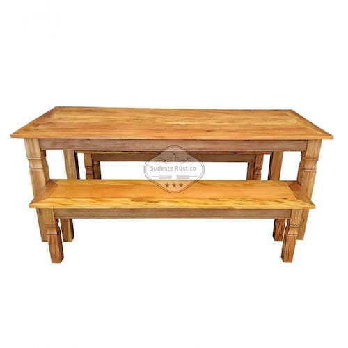 O Conjunto Mesa Rústica com Bancos de Encaixe em Madeira de Demolição da Sudeste Rústico é para você que procura uma peça tradicional e confortável. Altamente resistente e durável, o conjunto é produzido em madeira de demolição e é ideal para reunir a familia em áreas gourmet, áreas de churrasco, cozinhas e salas de jantares. Os bancos são também de madeira, sem encosto e podem acomodar até seis adultos de maneira confortável. Os bancos, por não serem fixos a mesa, podem facilmente se adequar a diversos ambientes. Deixe seu ambiente ainda mais bonito e sofisticado com o conjunto de mesa Rústica com Bancos da Sudeste Rústico.