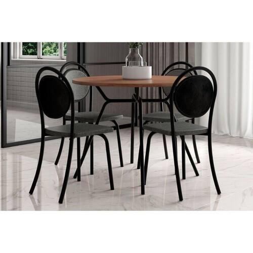 Conjunto: Mesa Sala Jantar 1588 C/ Tampo Madeirado 100cm E 4 Cadeiras 1738 Preto - Carraro