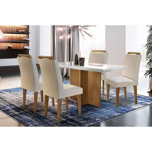 Conjunto: Mesa Sala Jantar Berlim Tampo c/Vidro 120cm Canto Reto + 4 Cadeiras Athenas Imbuia/Creme - Rufato - Blush