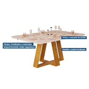 MESA JANTAR CELESTE C/ TAMPO MADEIRADO CURVO 170X90CM CEDRO/QUARTZO - DJ MÓVEIS