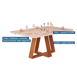 MESA JANTAR CELESTE C/ TAMPO MADEIRADO CURVO 170X90CM FREIJO/QUARTZO - DJ MÓVEIS