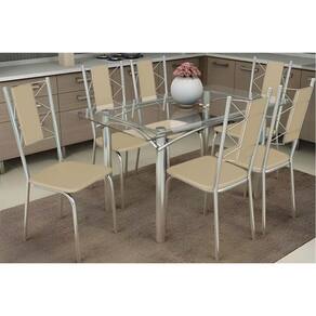 Sala de Jantar Completa Elba c/ Tampo de Vidro 120cm e 6 Cadeiras Lisboa Cromada - Courano Bege - Kappesberg Abaixo segue os produtos do KIT: Sala de Jantar Completa Elba c/ Tampo de Vidro 120cm e 6 Cadeiras Lisboa Cromada - Courano Bege - Kappesberg
