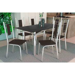 Sala de Jantar Completa Elba Tampo Madeirado c/ Vidro 120cm e 6 Cadeiras Florença Cromada/Preto - Courano Preto - Kappesberg