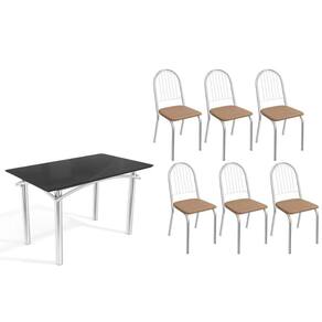 Sala de Jantar Completa Elba Tampo Madeirado c/ Vidro 120cm e 6 Cadeiras Noruega Cromada/Preto - Courano Capuccino - Kappesberg Abaixo segue os produtos do KIT: Sala de Jantar Completa Elba Tampo Madeirado c/ Vidro 120cm e 6 Cadeiras Noruega Cromada/Preto - Courano Capuccino - Kappesberg