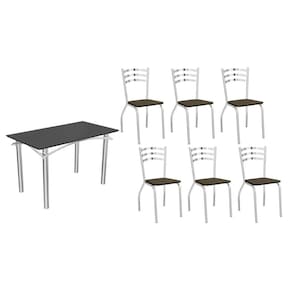 Sala de Jantar Completa Elba Tampo Madeirado c/ Vidro 120cm e 6 Cadeiras Portugal Cromada/Preto - Courano Marrom - Kappesberg Abaixo segue os produtos do KIT: Sala de Jantar Completa Elba Tampo Madeirado c/ Vidro 120cm e 6 Cadeiras Portugal Cromada/Preto - Courano Marrom - Kappesberg