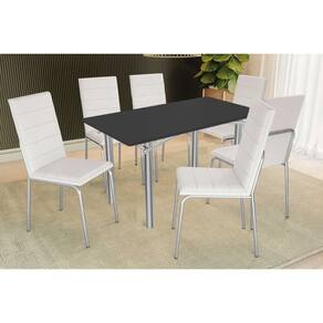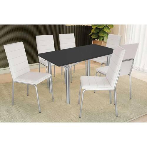 Sala de Jantar Completa Elba Tampo Madeirado c/ Vidro 160cm e 6 Cadeiras Amsterdã Cromada/Preto - Courano Branco - Kappesberg