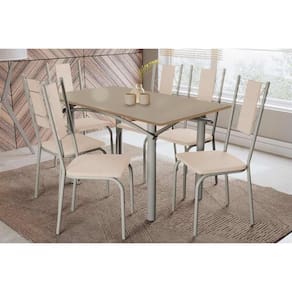 Sala de Jantar Completa Elba Tampo Madeirado c/ Vidro 160cm e 6 Cadeiras Lisboa Niquel/Freijo Bronze - Courano Bege - Kappesberg