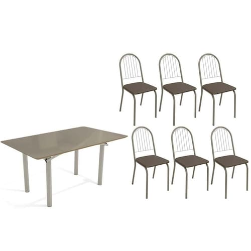 Sala de Jantar Completa Elba Tampo Madeirado c/ Vidro 160cm e 6 Cadeiras Noruega Niquel/Freijo Bronze - Courano Marrom - Kappesberg Abaixo segue os produtos do KIT: Sala de Jantar Completa Elba Tampo Madeirado c/ Vidro 160cm e 6 Cadeiras Noruega Niquel/Freijo Bronze - Courano Marrom - Kappesberg