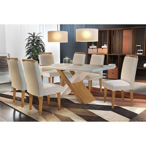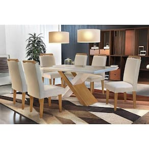 Sala de Jantar Completa Imperatriz c/ Tampo Madeirado Canto Reto 180cm + 6 Cadeiras Athenas Imbuia/Veludo Creme - Rufato
