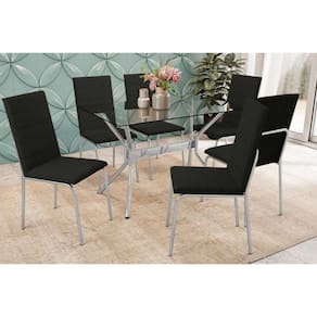 Sala de Jantar Completa Loire c/ Tampo de Vidro 120x80cm e 6 Cadeiras Amsterdã Cromada - Preto - Kappesberg