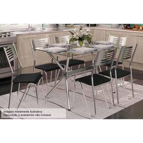 Sala de Jantar Completa Loire c/ Tampo Vidro 120cm + 6 Cadeiras Nápoles Cromado/Courano Preto - Kappesberg