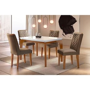 Abaixo segue os produtos do KIT: Sala de Jantar Completa Londrina Tampo Madeirado c/ Vidro 120x80cm e 4 Cadeiras Jade Capuccino/Suede Capuccino - Rufato