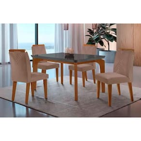 Sala de Jantar Completa Londrina c/ Tampo Madeirado c/ Vidro Canto Curvo 120x80cm e 4 cadeiras Amsterdã Imbuia/Grafite - Suede Capuccino - Rufato Abaixo segue os produtos do KIT: Sala de Jantar Completa Londrina c/ Tampo Madeirado c/ Vidro Canto Curvo 120x80cm e 4 cadeiras Amsterdã Imbuia/Grafite - Suede Capuccino - Rufato