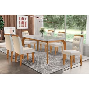 Sala de Jantar Completa Londrina Tampo Madeirado c/ Vidro 180x90cm e 6 Cadeiras Imperatriz Capuccino/Suede Creme - Rufato