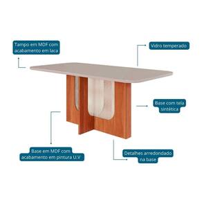Mesa de Sala Jantar Louise c/ Tampo Madeirado c/ Vidro 160x80cm Cinamomo/Off White - Cimol