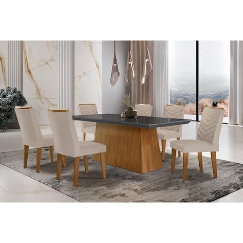 Sala de Jantar Completa Luna c/ Tampo de Vidro Canto Curvo 180x90cm e 6 cadeiras Londrina Imbuia/Grafite - Suede Creme - Rufato Abaixo segue os produtos do KIT: Sala de Jantar Completa Luna c/ Tampo de Vidro Canto Curvo 180x90cm e 6 cadeiras Londrina Imbuia/Grafite - Suede Creme - Rufato