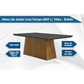 Mesa de Sala Jantar Luna c/ Tampo 180x90cm Madeirado Vidro Canto Curvo - Imbuia/Ripado 3D/Grafite - Rufato