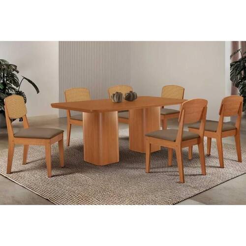 Conjunto: Mesa Sala Jantar Maldivas Curvo 180cm + 6 Cadeiras Havana Naturale - Suede Capuccino - Rufato - Blush
