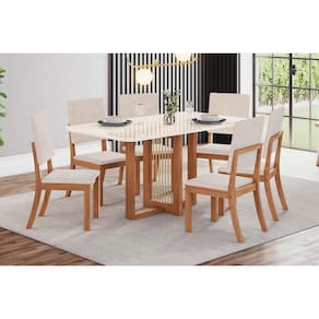 Sala de Jantar Completa Natalí c/ Tampo Madeirado c/ Vidro Curvo 160x80cm e 6 Cadeiras Milla Nature/Suede Light Linho - Henn Abaixo segue os produtos do KIT: Sala de Jantar Completa Natalí c/ Tampo Madeirado c/ Vidro Curvo 160x80cm e 6 Cadeiras Milla Nature/Suede Light Linho - Henn