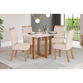Sala de Jantar Completa Natalí c/ Tampo Madeirado c/ Vidro Reto 120x80cm e 4 Cadeiras Bella Nature/Linho - Henn Abaixo segue os produtos do KIT: Sala de Jantar Completa Natalí c/ Tampo Madeirado c/ Vidro Reto 120x80cm e 4 Cadeiras Bella Nature/Linho - Henn