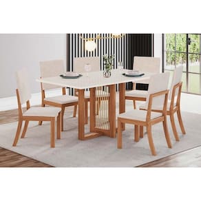 Sala de Jantar Completa Natalí c/ Tampo Madeirado Reto s/ Vidro 160x90cm e 6 Cadeiras Milla Nature/Suede Light Linho - Henn Abaixo segue os produtos do KIT: Sala de Jantar Completa Natalí c/ Tampo Madeirado Reto s/ Vidro 160x90cm e 6 Cadeiras Milla Nature/Suede Light Linho - Henn