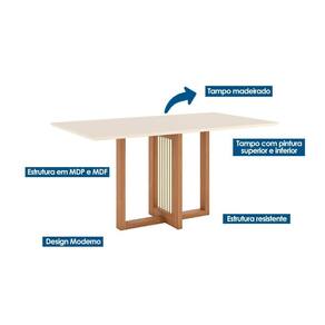 Mesa de Sala Jantar Natalí SC72 c/ Tampo Madeirado Reto s/ Vidro 160cm Nature/Off White - Henn