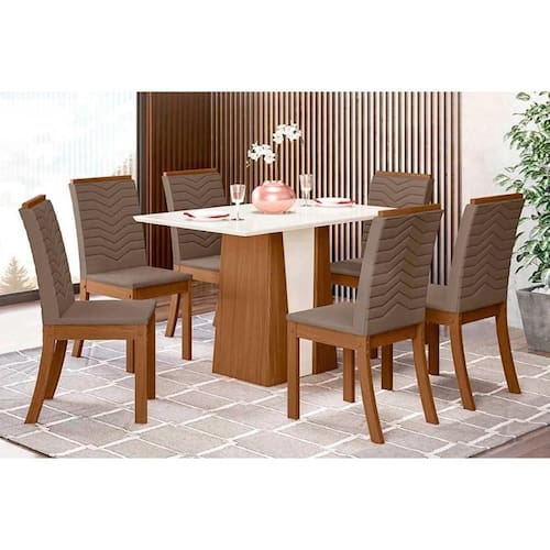 Sala de Jantar Completa Orus Tampo Madeirado 120x80cm e 6 Cadeiras Isa Nature/Off White - Suede Marrom - Henn