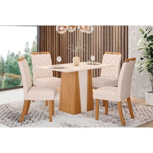 Sala de Jantar Completa Orus Tampo Madeirado c/ Vidro 120x80cm e 4 Cadeiras Bella Nature/Linho - Henn Abaixo segue os produtos do KIT: Sala de Jantar Completa Orus Tampo Madeirado c/ Vidro 120x80cm e 4 Cadeiras Bella Nature/Linho - Henn