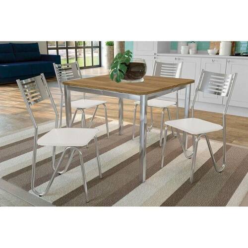 Conjunto: Mesa Sala Jantar Reno C/ Tampo De Madeira 90cm E 4 Cadeiras Nápoles Cromada/branco 106 - Kappesberg