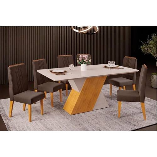 Sala de Jantar Completa Rubi Tampo Madeirado c/ Vidro Curvo 170x90cm e 6 Cadeiras Lia Cedro/Off White/Off White - Suede Moca - DJ Móveis Abaixo segue os produtos do KIT: Sala de Jantar Completa Rubi Tampo Madeirado c/ Vidro Curvo 170x90cm e 6 Cadeiras Lia Cedro/Off White/Off White - Suede Moca - DJ Móveis