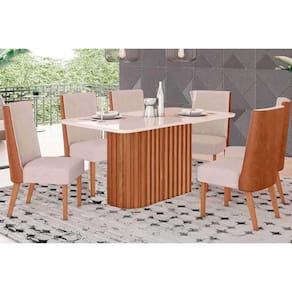 Sala de Jantar Completa Solana SC68 Tampo Madeirado c/ Vidro Canto Curvo 160x90cm e 6 Cadeiras Anne Nature/Courano/Creme - Henn Abaixo segue os produtos do KIT: Sala de Jantar Completa Solana SC68 Tampo Madeirado c/ Vidro Canto Curvo 160x90cm e 6 Cadeiras Anne Nature/Courano/Creme - Henn