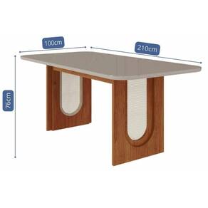 Dimensões(Cm): Mesa Jantar Valentina c/ Tampo Madeirado c/ Vidro Reto 210x100cm