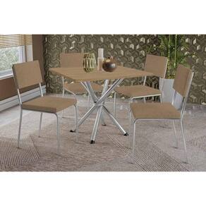 Sala de Jantar Completa Volga c/ Tampo de Madeira 90cm e 4 Cadeiras Zaria Cromada/Nogueira - Suede Bege - Kappesberg Abaixo segue os produtos do KIT: Sala de Jantar Completa Volga c/ Tampo de Madeira 90cm e 4 Cadeiras Zaria Cromada/Nogueira - Suede Bege - Kappesberg