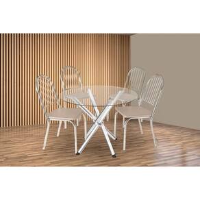 Sala de Jantar Completa Volga c/ Tampo de Vidro 95cm e 4 Cadeiras Noruega Cromada - Courano Bege - Kappesberg Abaixo segue os produtos do KIT: Sala de Jantar Completa Volga c/ Tampo de Vidro 95cm e 4 Cadeiras Noruega Cromada - Courano Bege - Kappesberg