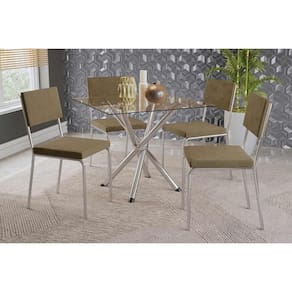 Conjunto: Mesa Sala Jantar Volga C/ Tampo De Vidro 90cm E 4 Cadeiras Zaria Cromada - Suede Bege - Kappesberg
