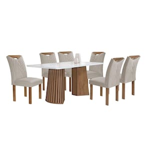 Renove sua sala de jantar com o conjunto Mesa Stella, acompanhado por seis cadeiras. A mesa tem um visual moderno, com linhas suaves e elegantes. As cadeiras são confortáveis e têm um estilo sofisticado. Juntos, eles fazem da sua sala de jantar um lugar especial para reunir a família e os amigos. Medida da Mesa (A x L x P): 79cmx170cmx90cm Peso da Mesa: 69,5 kg Mesa suporta até: 40.0000 Acabamento da Cadeira/Banco: Pintura Acabamento da Mesa: Pintura UV Acompanha Manual de Instalação: Sim Almofada do assento: Fixa Ambiente Principal: Sala de Jantar Cadeira/Banco estofada: Encosto e Assento Estofados Cadeira/Banco Estofada: Encosto e Assento Estofados Cadeira/Banco suporta até: 120.0000 codigo_ean: 7909903599020 Complexidade da Montagem: Alta: deve ser montado por um montador especializado Cor: Chocolate/Off White/Veludo Bege Claro Cor do Produto: Chocolate/Off White/Veludo Bege Claro De Canto (Canto Alemão): Não Design da Base: Cilindro Enchimento do Assento: Espuma D-23 Enchimento do Encosto: Espuma D-20 Escala de Brilho: Fosco Espessura do Tampo: 29 mm Estrutura do Assento: MDF Estrutura do Encosto: MDF Formato do Tampo: Retangular Itens Inclusos: 1 Mesa Stella com 6 cadeiras e manual de montagem Linha ou Coleção: Stella Manual de Montagem e Instalação: https://product-hub-prd.madeiramadeira.com.br/895885/documents/b7f7acae-dccb-4ae9-89cf-09d6e0133bbeA20NEVADA20CADEIRA20NEVADA.pdf Material da Base da Mesa: MDF Material da Estrutura da Cadeira: MDF Material do Tampo: Vidro/MDF Material Principal: MDF Material Principal das Cadeiras/Bancos: MDF Medida da Cadeira/Banco (A x L x P): 96,5cmx56cmx44cm Medida do Tampo (L x C x E): 170cmx90cmx2,9cm Mesa Dobrável: Não Mesa Extensível: Não Necessita Montagem: Sim Origem do Produto: Nacional Peso da Cadeira/Banco: 9,1 kg Possui Apoio para Braços: Não Possui Apoio Para os Pés: Não Possui Prateleiras: Não Possui Suporte Giratório: Não Possui Vidro: Sim Quantidade de Cadeiras: 6 Quantidade de Lugares: 06 Recomendações de Uso, Manutenção e Limpeza: Limpar apenas com pano úmido. Revestimento da Cadeira/Banco: Veludo Sistema de Montagem: Parafusos Tipo de Assento: Fixo Tipo de Encosto: Fixo