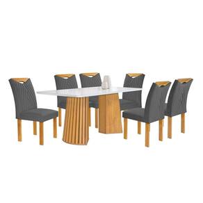 Renove sua sala de jantar com o conjunto Mesa Stella, acompanhado por seis cadeiras. A mesa tem um visual moderno, com linhas suaves e elegantes. As cadeiras são confortáveis e têm um estilo sofisticado. Juntos, eles fazem da sua sala de jantar um lugar especial para reunir a família e os amigos. Medida da Mesa (A x L x P): 79cmx170cmx90cm Peso da Mesa: 69,5 kg Mesa suporta até: 40.0000 Acabamento da Cadeira/Banco: Pintura Acabamento da Mesa: Pintura UV Acompanha Manual de Instalação: Sim Almofada do assento: Fixa Ambiente Principal: Sala de Jantar Cadeira/Banco estofada: Encosto e Assento Estofados Cadeira/Banco Estofada: Encosto e Assento Estofados Cadeira/Banco suporta até: 120.0000 codigo_ean: 7909903598962 Complexidade da Montagem: Alta: deve ser montado por um montador especializado Cor: Cinamomo/Off White/Veludo Cinza Cor do Produto: Cinamomo/Off White/Veludo Cinza De Canto (Canto Alemão): Não Design da Base: Cilindro Enchimento do Assento: Espuma D-23 Enchimento do Encosto: Espuma D-20 Escala de Brilho: Fosco Espessura do Tampo: 29 mm Estrutura do Assento: MDF Estrutura do Encosto: MDF Formato do Tampo: Retangular Itens Inclusos: 1 Mesa Stella com 6 cadeiras e manual de montagem Linha ou Coleção: Stella Manual de Montagem e Instalação: https://product-hub-prd.madeiramadeira.com.br/895879/documents/c4984fab-e4ab-454e-a4a7-c9efc5953b53A20NEVADA20CADEIRA20NEVADA.pdf Material da Base da Mesa: MDF Material da Estrutura da Cadeira: MDF Material do Tampo: Vidro/MDF Material Principal: MDF Material Principal das Cadeiras/Bancos: MDF Medida da Cadeira/Banco (A x L x P): 96,5cmx56cmx44cm Medida do Tampo (L x C x E): 170cmx90cmx2,9cm Mesa Dobrável: Não Mesa Extensível: Não Necessita Montagem: Sim Origem do Produto: Nacional Peso da Cadeira/Banco: 9,1 kg Possui Apoio para Braços: Não Possui Apoio Para os Pés: Não Possui Prateleiras: Não Possui Suporte Giratório: Não Possui Vidro: Sim Quantidade de Cadeiras: 6 Quantidade de Lugares: 06 Recomendações de Uso, Manutenção e Limpeza: Limpar apenas com pano úmido. Revestimento da Cadeira/Banco: Veludo Sistema de Montagem: Parafusos Tipo de Assento: Fixo Tipo de Encosto: Fixo