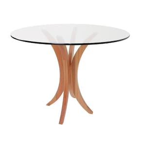 O conjunto é composto por uma mesa de jantar e 4 cadeiras, sendo que a mesa de jantar possui seu tampo confeccionado em Vidro Temperado de altíssima qualidade em formato circular com tamanho de 90,00 (cm) de diâmetro, sua base é confeccionada em madeira de eucalipto garantindo um excelente acabamento ao produto.