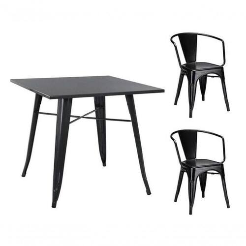 Conjunto Mesa Tolix 80 Cm + 2 Cadeiras Tolix Com Braço - Preto Mesa Quadrada Tolix com tampo em metal Com um ar mais industrial a mesa é forte, firme e bem resistente, pintura de alta qualidade e eletrostática, perfeita para deixar o seu ambiente mais moderno e agradável, proporcionando qualidade e segurança. Informações da Mesa QuadradaAltura total: 75cmTampo: 80cm x 80cmEspessura do tampo: 3cmLargura total: 80cm x 80cmPeso: 20,548kgGarantia: 3 meses de garantia contra defeitos reais do produto, relacionados única e exclusivamente à fabricação. Cadeira modelo TolixMaterial: Aço carbono pintadoAltura do encosto: 73 cmAltura do assento: 44 cmAltura dos braços: 73 cmLargura total: 53 cmProfundidade total: 46 cmPeso suportado: 130 kgGarantia: 3 meses O mau uso deste produto não entrará na garantia.